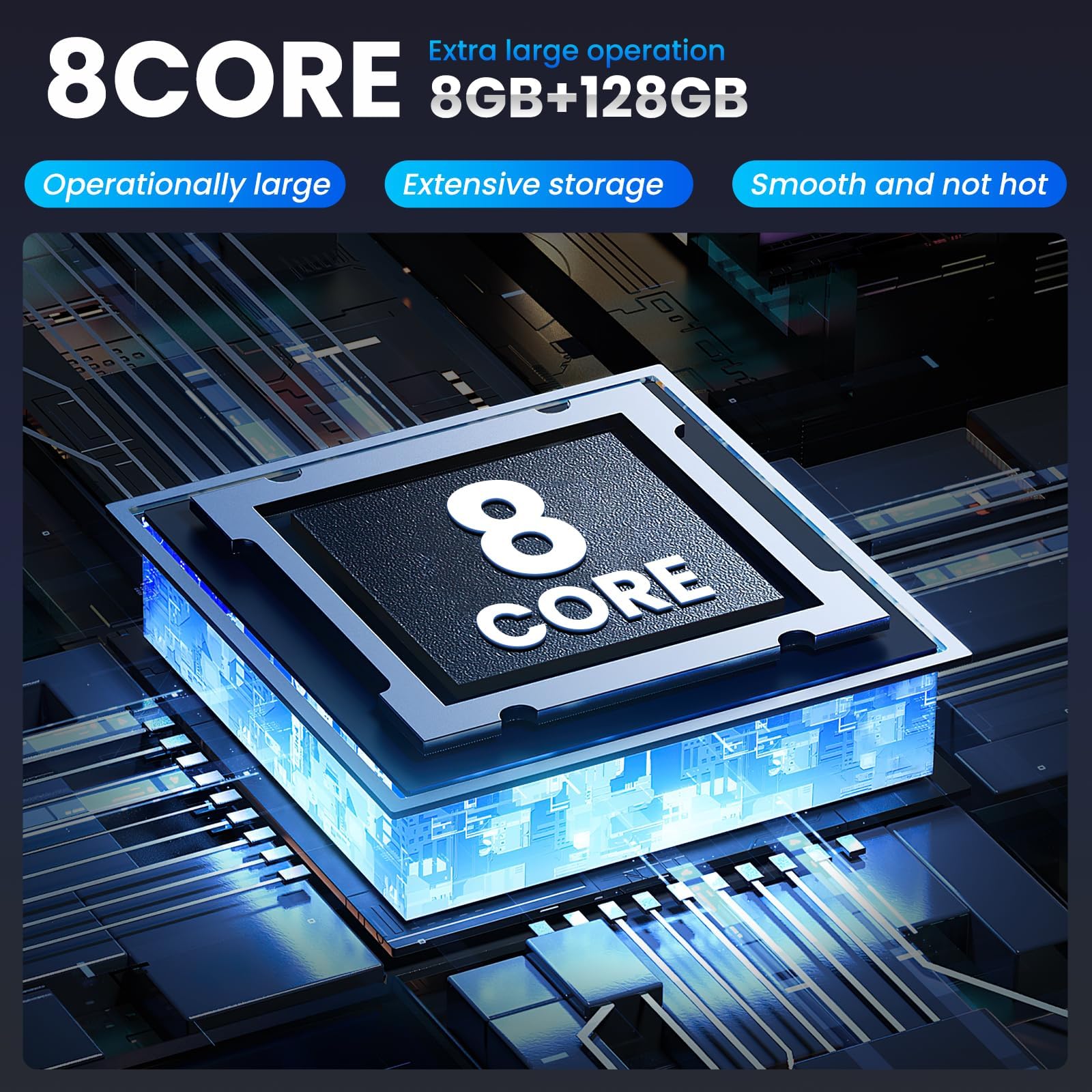 - Powered by an 8-core CPU with 8GB RAM and 128GB storage, this Android-based car stereo delivers fast response, smooth multitasking, and stable performance when running navigation, CarPlay, music, and apps at the same time.