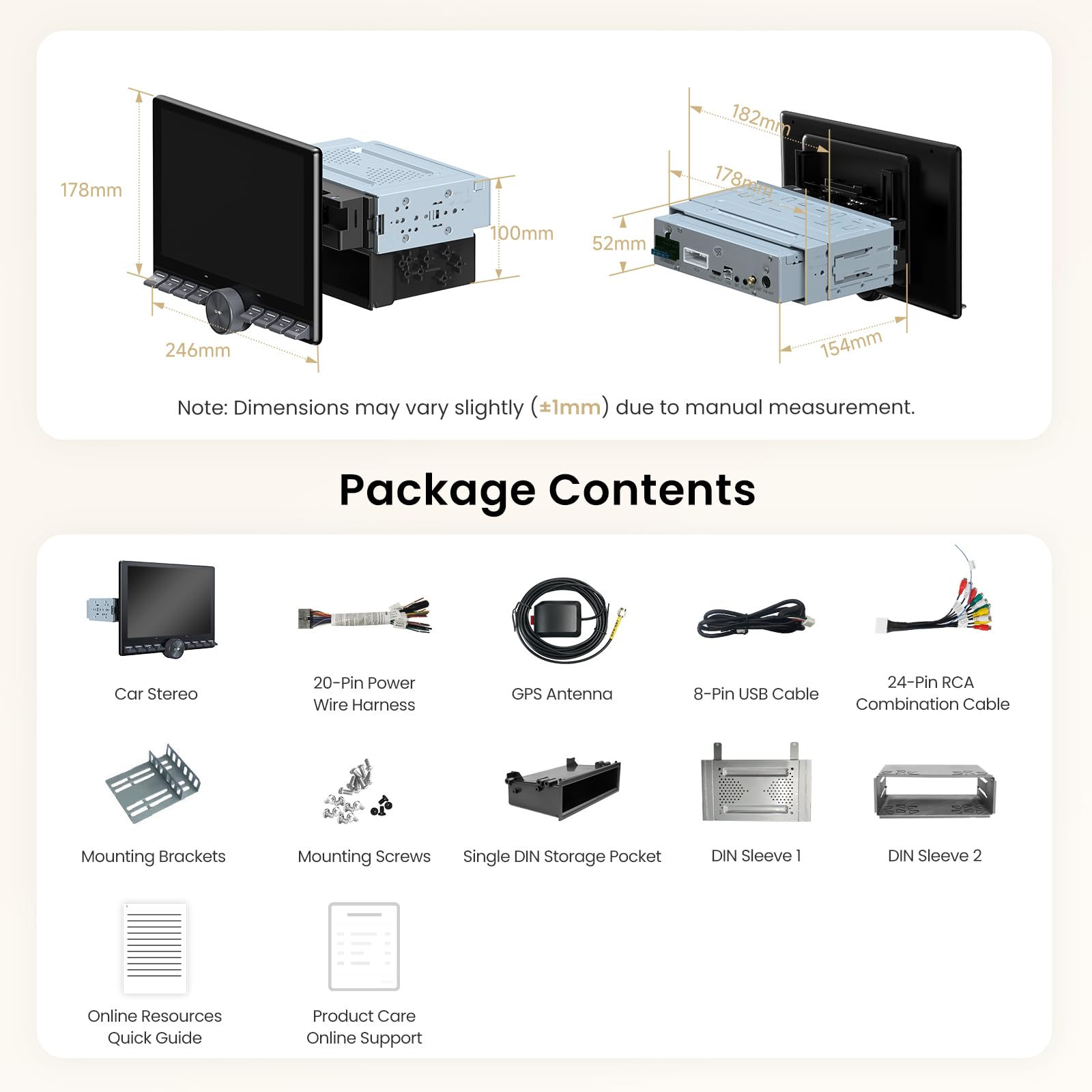 - 【Single & Double-DIN Flexibility】This head unit is designed for broad vehicle compatibility. It arrives as a single-DIN unit and includes a conversion kit for double-DIN installation. Achieve a clean, integrated appearance that fits your vehicle's dashboard configuration.
